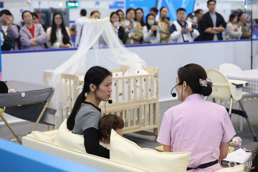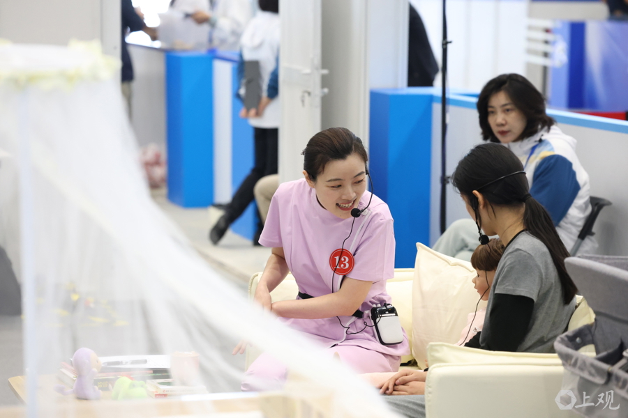 围观人群除了全国专业同行外,还有年轻的准妈妈和退休后将要参与带孙辈的两大群体。