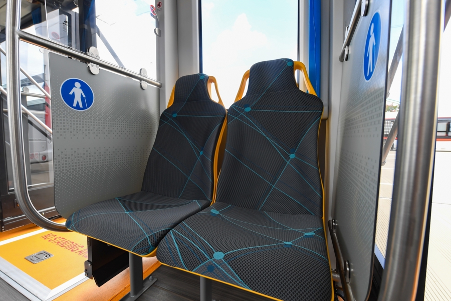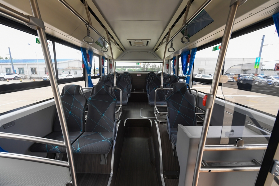 记者在现场看到,新车内饰采用上浅下深风格,简洁明亮;不锈钢扶手采用弯弧且不落地设计,既避免绊脚风险,又提高保洁效率;隐藏式空调出风口有效防止空调直吹,提升乘坐体验;座椅升级为柔软亲肤材料并增加头枕,舒适性进一步提高;车辆后部两排四个反向座位改为正向,省下内部空间增设行李架。